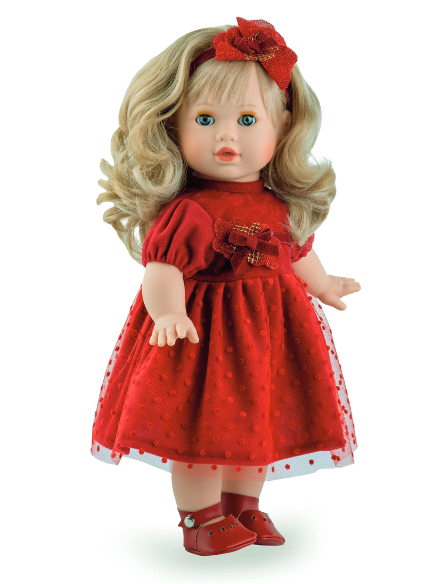 Lala o imieniu Tina Natale 0622 to kolejna piękność z asortymentu marki Marina & Pau. Dziewczynka o blond włosach ma 42 cm wysokości i jest jedną z większych modeli lalek hiszpańskich. Dziewczynka ma długie, gęste blond włosy z grzywką, które są pofalowane i rozpuszczone. Dodatkowej elegancji oraz szyku doda czerwona opaska wykończona kwiatem. Z Tiną można bawić się w fryzjerkę, czesać czy upinać włosy. Zabawka z uwagi na bezpieczeństwo przeznaczona jest do użytku dla dzieci od 3 roku życia.