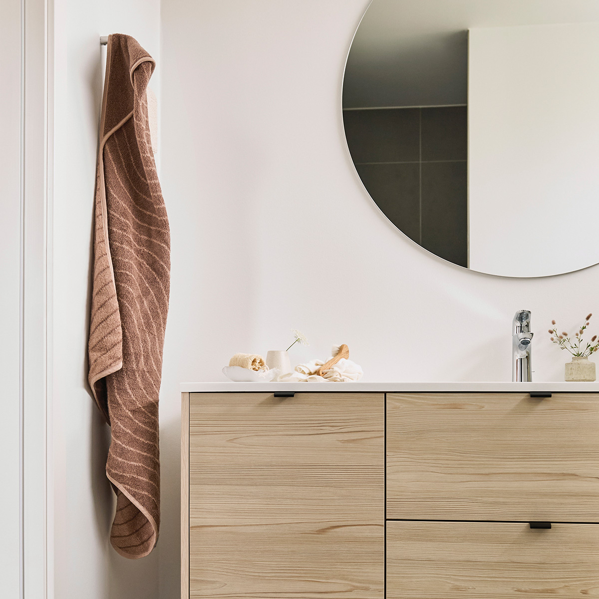 Ręcznik z kapturem jest dwustronny. Jego barwy pasują do kolorystyki przewijaka Leander Matty™ i Leander Wally™ oraz podkładu Leander.