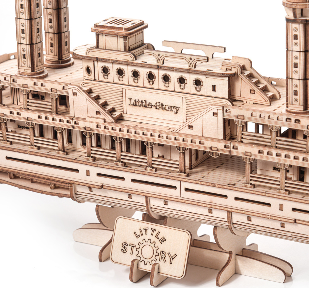 Elegancki drewniany model statku parowego do samodzielnego montażu – idealny dla miłośników techniki, historii i precyzyjnych konstrukcji. Model zachwyca bogactwem detali: pokładami, kominami i charakterystycznym kołem łopatkowym, tworząc realistyczną miniaturę klasycznego parowca. Wykonany z naturalnego drewna, bez potrzeby użycia kleju, stanowi satysfakcjonujące wyzwanie i efektowną dekorację po złożeniu. Doskonały pomysł na prezent lub kolekcjonerski element do wnętrza.Dane techniczne