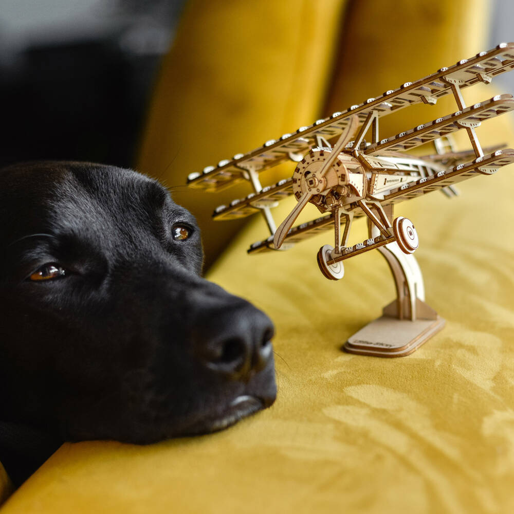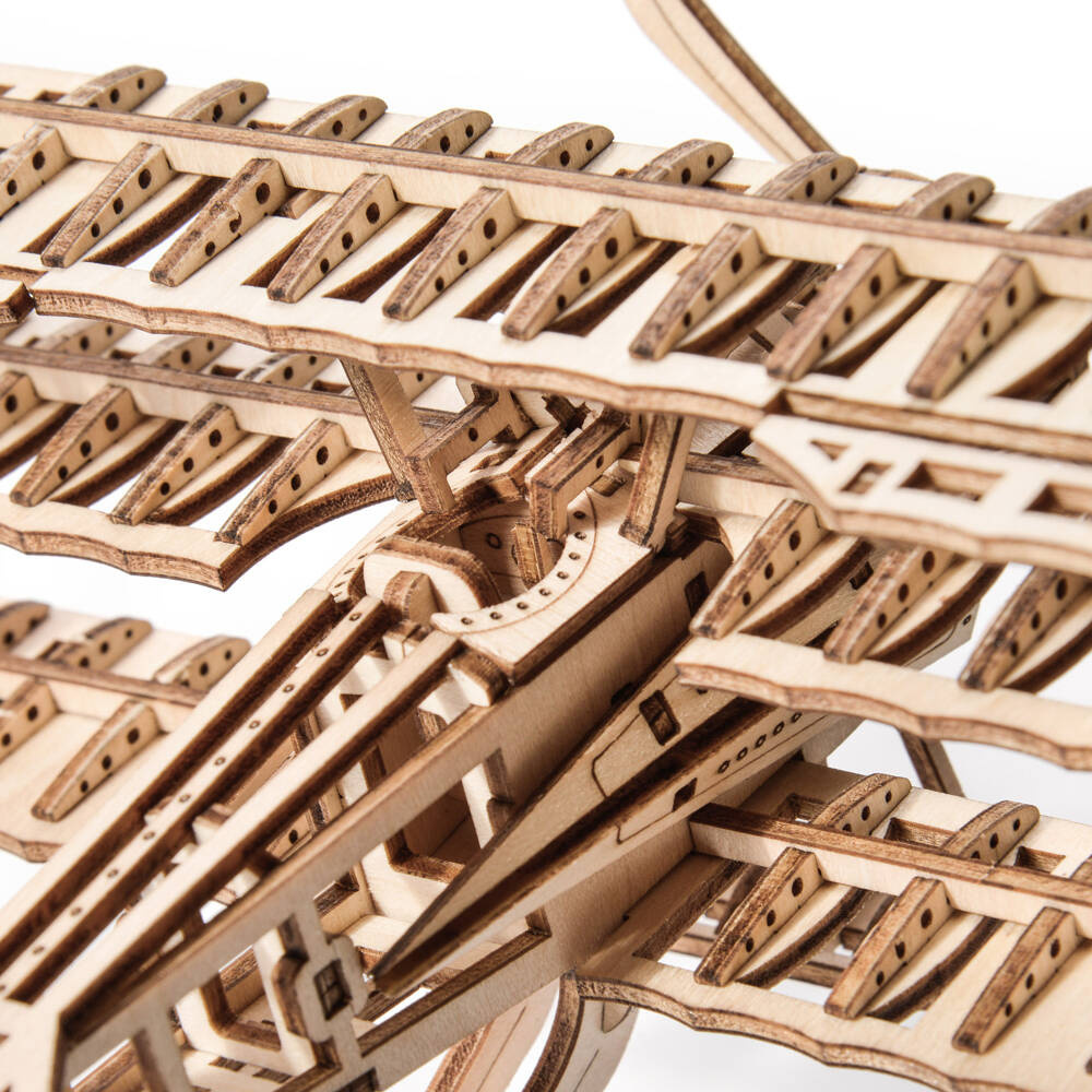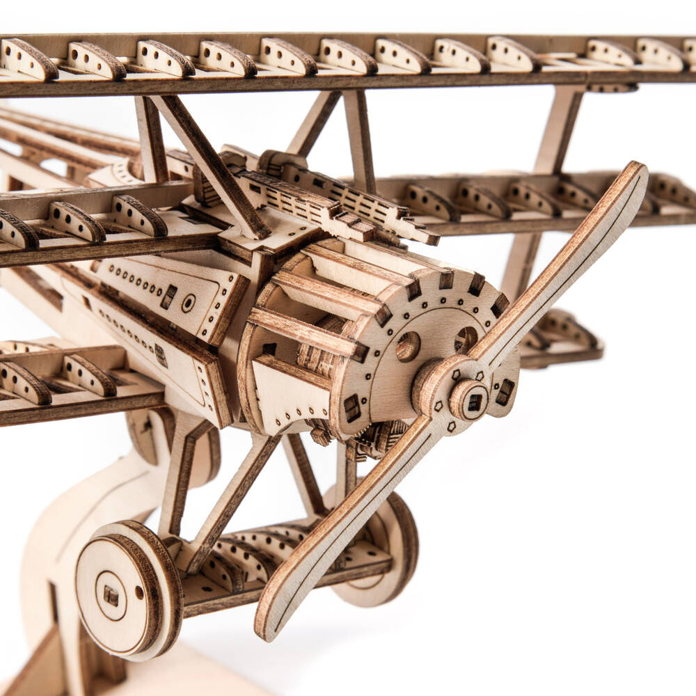 Drewniane puzzle 3D w kształcie Samolotu o trzech płatach nośnych. Zestaw został wykonany z wysokiej jakości sklejki i jest w postaci arkuszy z wstępnie wyciętymi i ponumerowanymi elementami. Przed montażem należy oddzielić części od wykroju, a następnie połączyć bez użycia kleju, zgodnie ze szczegółową instrukcją dołączoną do opakowania. Zabawka edukacyjna, która po złożeniu może również służyć jako dekoracja. Uwaga - zestaw może zawierać małe elementy, podczas składania puzzli, dzieci muszą pozostać pod opieką dorosłych.