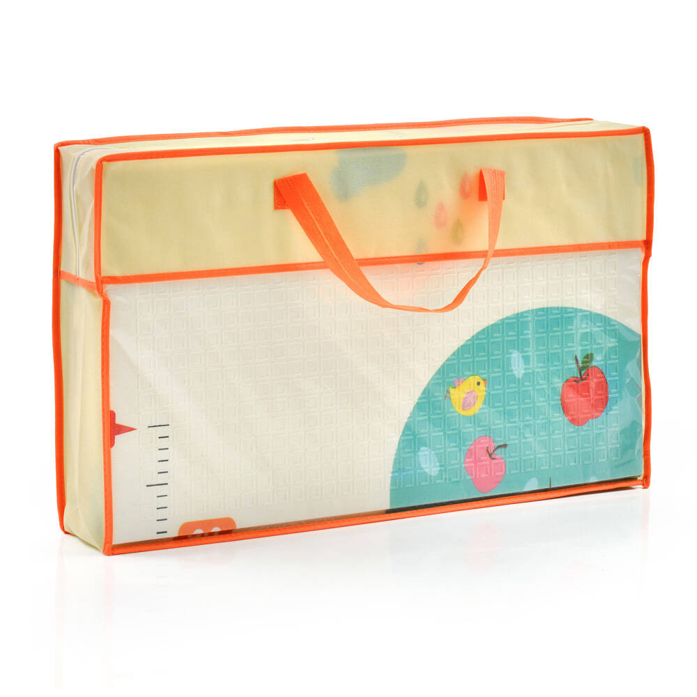 ŁATWA W TRANSPORCIE I PRZECHOWYWANIU Mata posiada składaną konstrukcje oraz wygodną torbę transportową z rączką. Jest to niezwykle praktyczne rozwiązanie. Matę możesz w dowolnym momencie schować do szafy, przenieść do innego pomieszczenia lub zabrać ze sobą w podróż lub na piknik. *Złożenia maty są całkowicie niewyczuwalne i nie przeszkadzają maluszkowi w zabawie. Są miękkie i równomiernie się rozkładają.