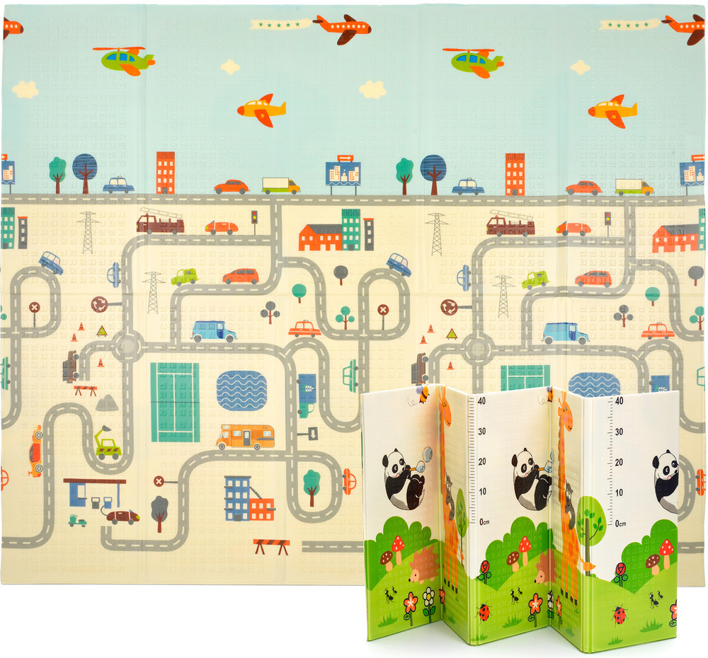 ŁATWA W TRANSPORCIE I PRZECHOWYWANIU Mata posiada składaną konstrukcje oraz wygodną torbę transportową z rączką. Jest to niezwykle praktyczne rozwiązanie. Matę możesz w dowolnym momencie schować do szafy, przenieść do innego pomieszczenia lub zabrać ze sobą w podróż lub na piknik. *Złożenia maty są całkowicie niewyczuwalne i nie przeszkadzają maluszkowi w zabawie. Są miękkie i równomiernie się rozkładają.