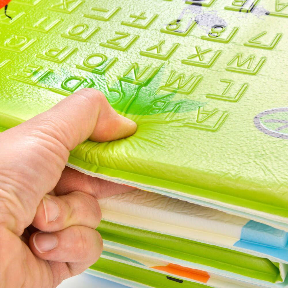Powierzchnię maty tworzy delikatny antypoślizgowy alfabet.