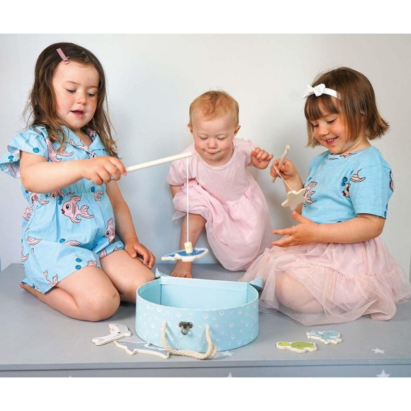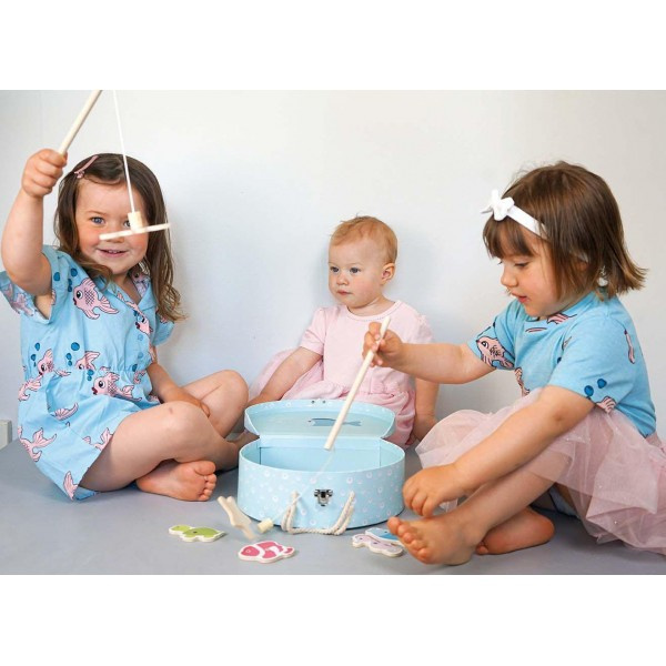 Rybki do łowienia to świetna gra zręcznościowa, w zestawie dwie wędki, kolorowe rybki i morskie stworki, oraz śliczne pudełeczko akwen do łowienia i przechowywania gry. Drewniana gra "Łowimy rybki" to wspaniała zabawa, która będzie długo towarzyszyła dziecku. Początkujący gracze łowią rybki za pomocą wędki, której uchwyt jest zakończony magnesem. Ten kto złowi więcej rybek, wygrywa grę.
