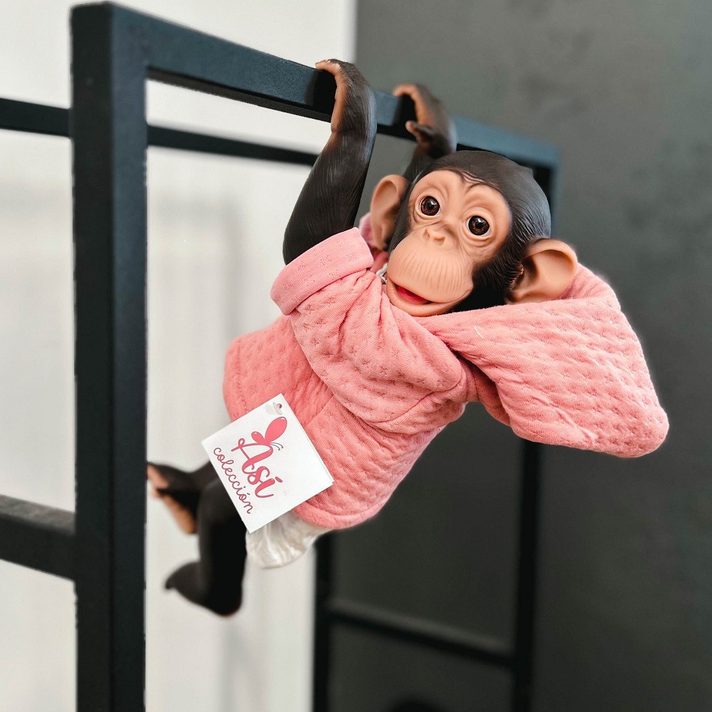 Zwracająca uwagę realistycznym wyglądem, dopracowana w najdrobniejszym szczególe małpka renomowanej hiszpańskiej marki Asi wykonana została z miękkiego, gładkiego winylu. Zwracają uwagę brązowe oczy o głębokim spojrzeniu. Przegubowe kończyny można ułożyć dowolnie. Głowa jest również ruchoma, dzięki czemu zabawka może przyjmować różne pozy.