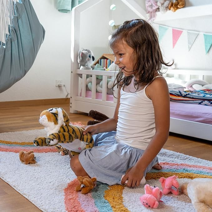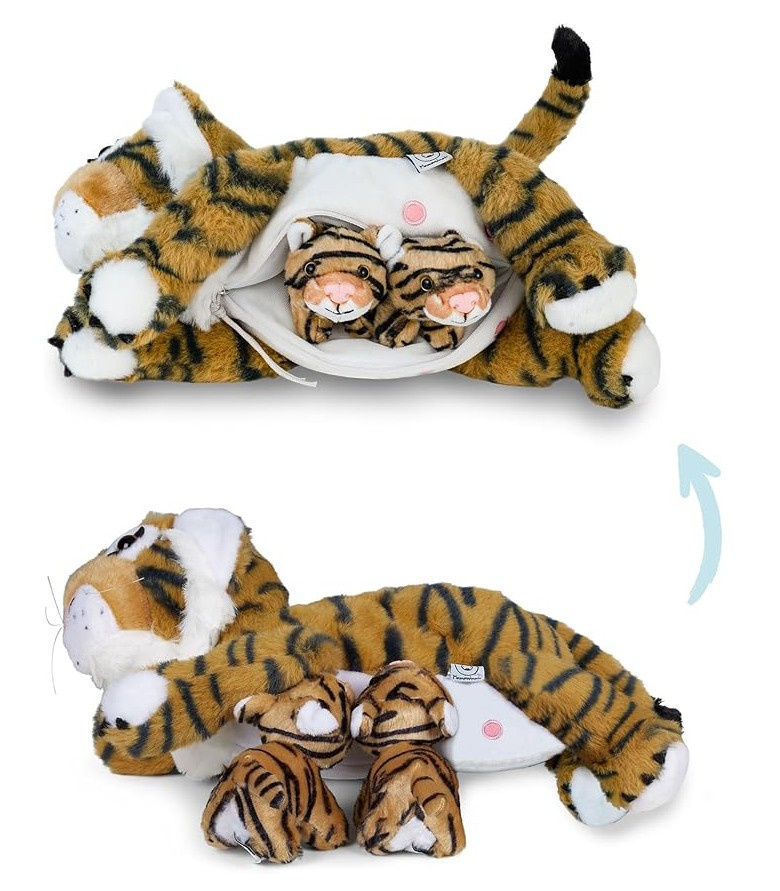 Pluszowe zwierzęta Mamanimals to niezrównane towarzystwo dla każdej mamy i jej malucha. Każde z tych uroczych stworzeń jest stworzone z myślą o miłości, zabawie i naukowych odkryciach. Dzięki magnesom umieszczonym w pyszczkach 3 małych tygrysków mogą one przyczepić się do sutków mamy. Mamanimals nie tylko wzbudzają uśmiech, ale także pobudzają rozwój dziecka.