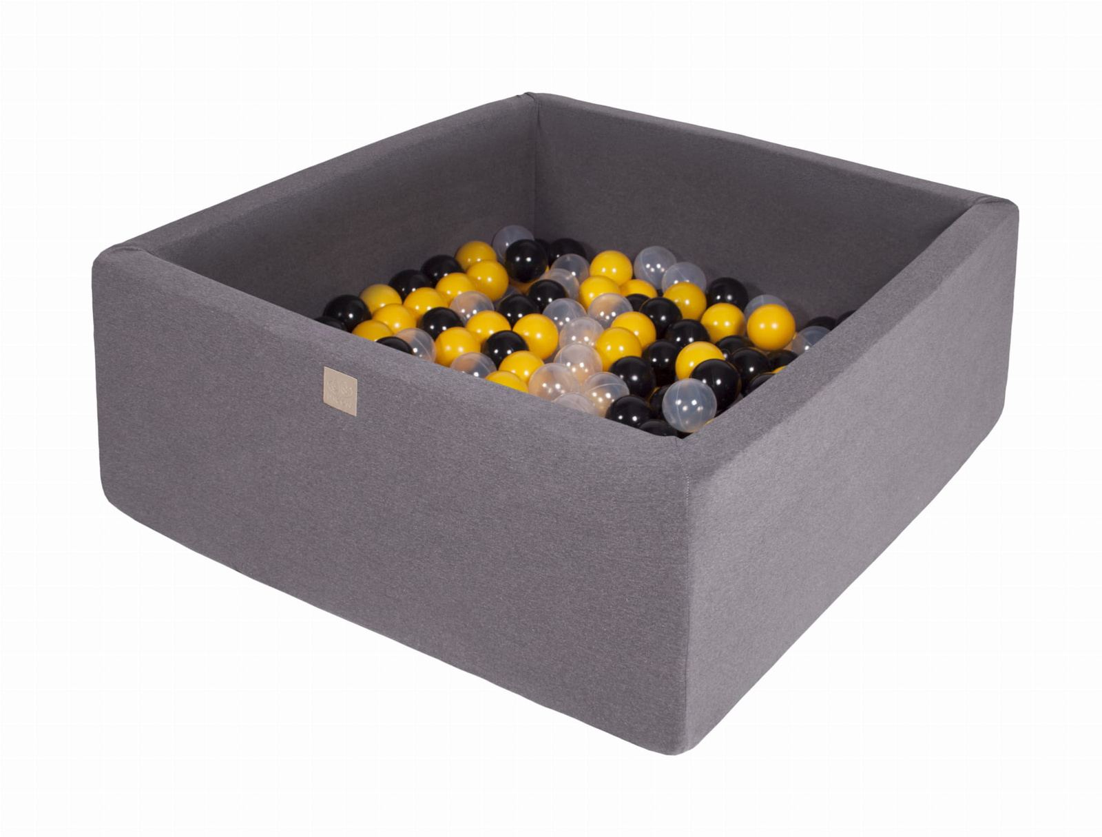 MeowBaby® basen kwadratowy ciemnoszary 110x110x40 + 400 piłek (żółte, czarne, transparentne)