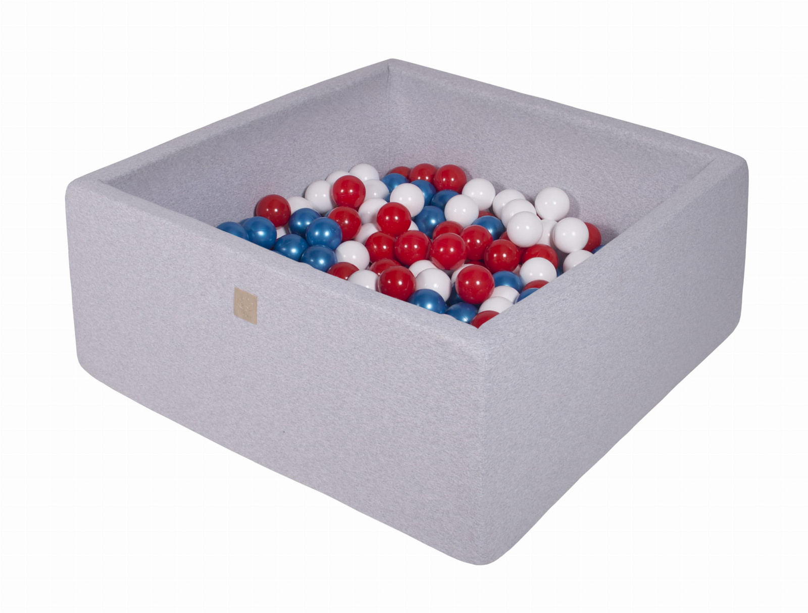 MeowBaby® basen kwadratowy jasnoszary 110x110x40 + 400 piłek (niebieska perła, białe, czerwone)