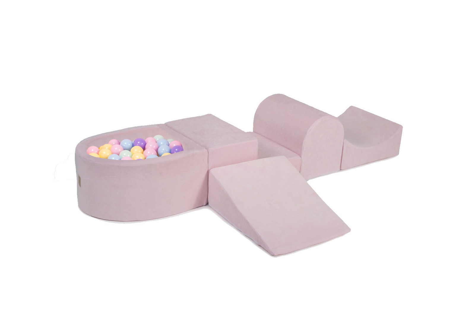 MeowBaby® Piankowy Zestaw do Zabawy Jasnoróżowy + komplet 100 piłeczek: babyblue, miętowe, pastel róż, pastel żółty, wrzosowe