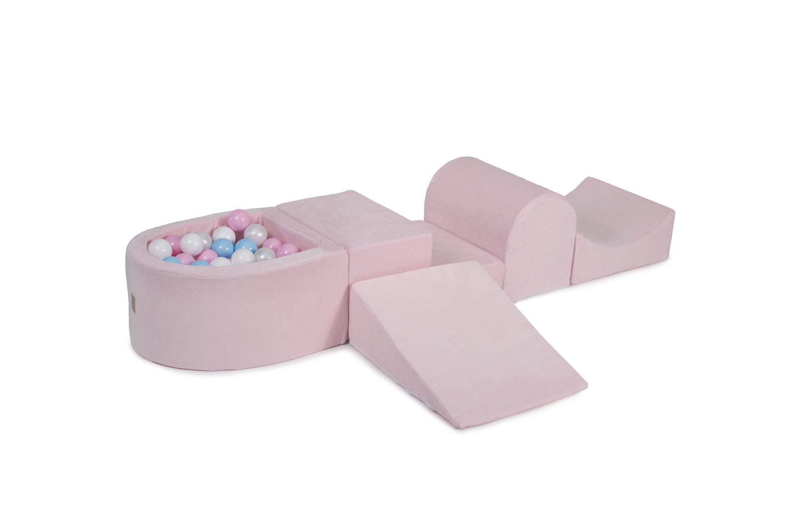 Do zestawu dołączono mini-basen wypełniony wielobarwnymi kulkami, których kolory można dobrać z szerokiej gamy kolorystycznej, według własnych preferencji. Piankowy zestaw do zabawy stanowi doskonały element wyposażenia żłobków, przedszkoli, placów zabaw ale, przede wszystkim ze względu na wyjątkowo miły w dotyku pokrowiec - także pokoi dziecięcych. Prosty i minimalistyczny desgin tego produktu sprawia, że idealnie wkomponuje się w przestrzeń domu.