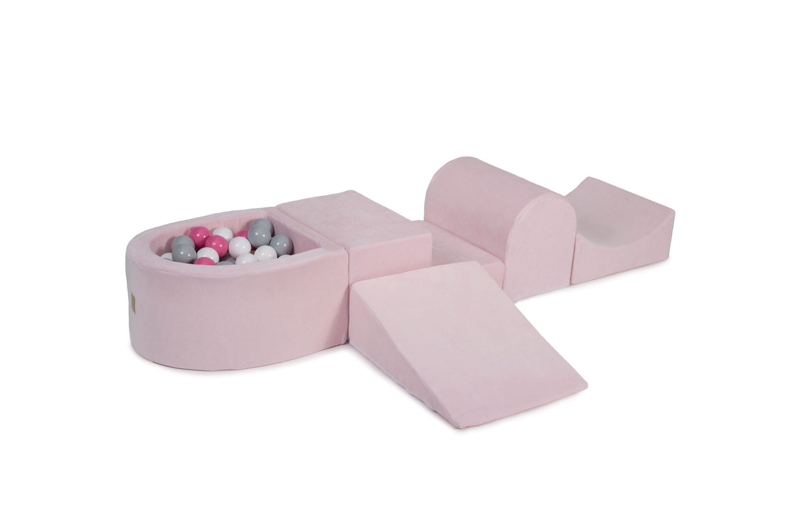 MeowBaby® Piankowy Zestaw do Zabawy Jasnoróżowy + komplet 100 piłeczek: białe, szary, jasny róż