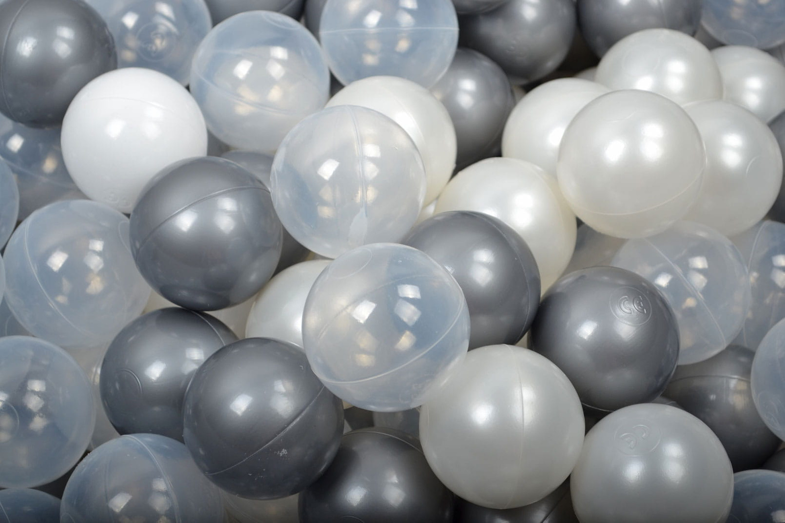 MeowBaby® Piankowy Zestaw do Zabawy Jasnoróżowy + komplet 100 piłeczek: srebrne, białe, biała perła, transparentne