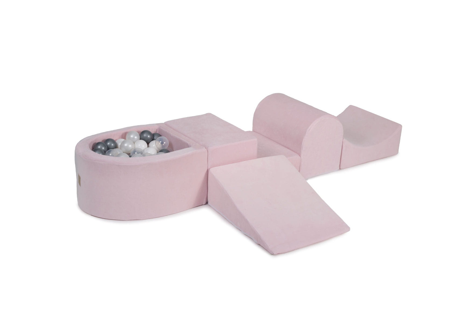 Do zestawu dołączono mini-basen wypełniony wielobarwnymi kulkami, których kolory można dobrać z szerokiej gamy kolorystycznej, według własnych preferencji. Piankowy zestaw do zabawy stanowi doskonały element wyposażenia żłobków, przedszkoli, placów zabaw ale, przede wszystkim ze względu na wyjątkowo miły w dotyku pokrowiec - także pokoi dziecięcych. Prosty i minimalistyczny desgin tego produktu sprawia, że idealnie wkomponuje się w przestrzeń domu.