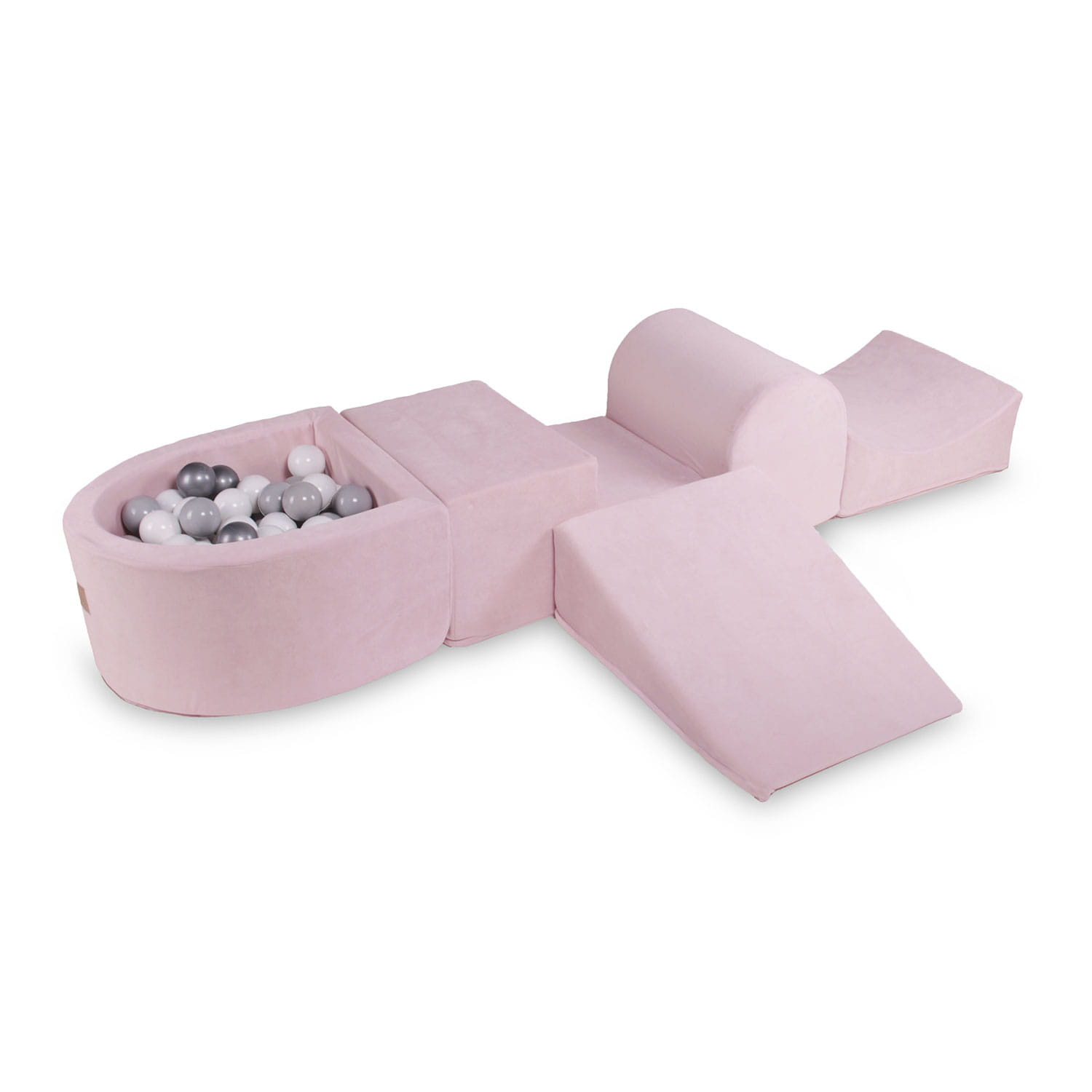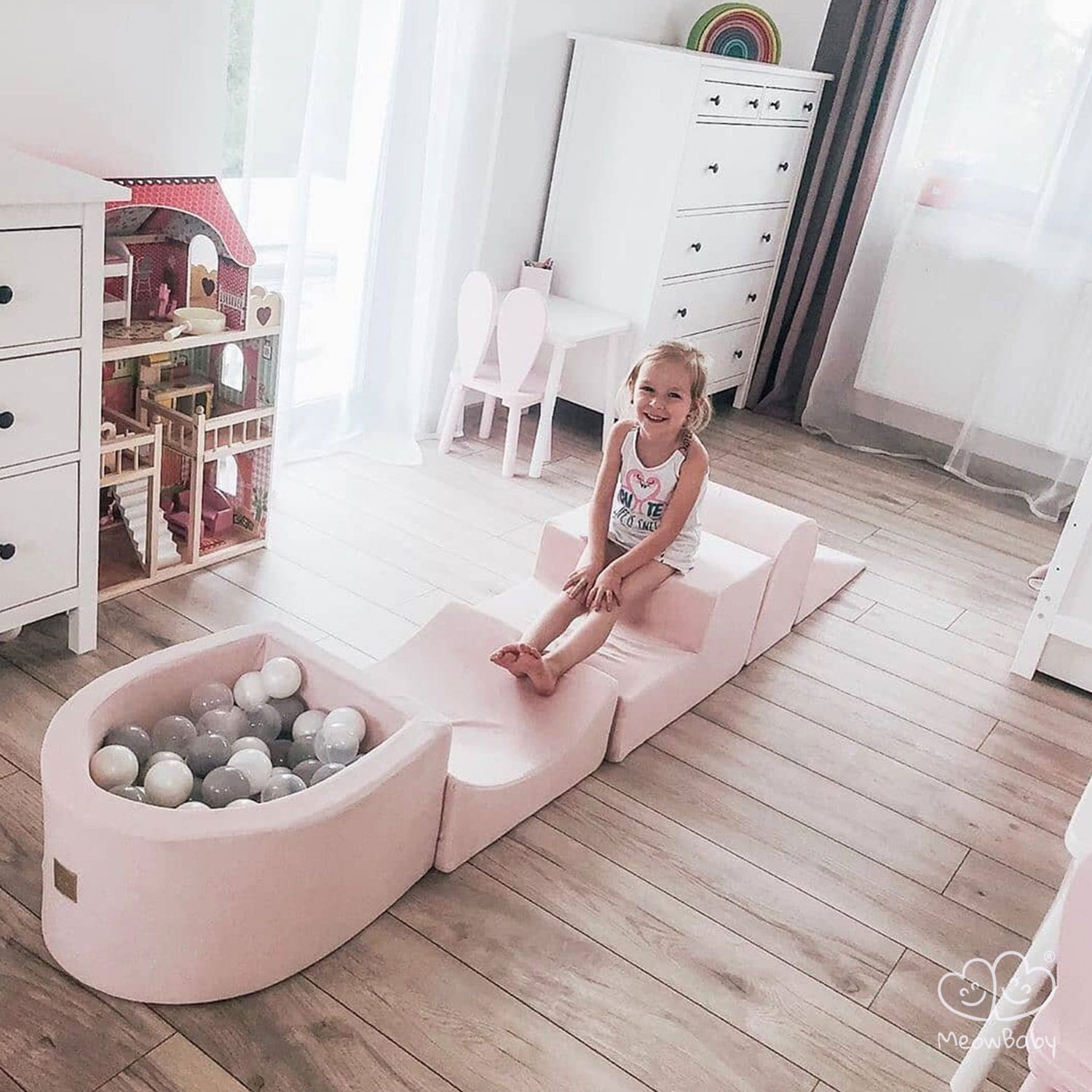 Do zestawu dołączono mini-basen wypełniony wielobarwnymi kulkami, których kolory można dobrać z szerokiej gamy kolorystycznej, według własnych preferencji. Piankowy zestaw do zabawy stanowi doskonały element wyposażenia żłobków, przedszkoli, placów zabaw ale, przede wszystkim ze względu na wyjątkowo miły w dotyku pokrowiec - także pokoi dziecięcych. Prosty i minimalistyczny desgin tego produktu sprawia, że idealnie wkomponuje się w przestrzeń domu.