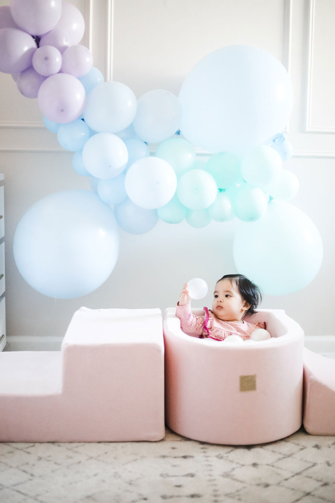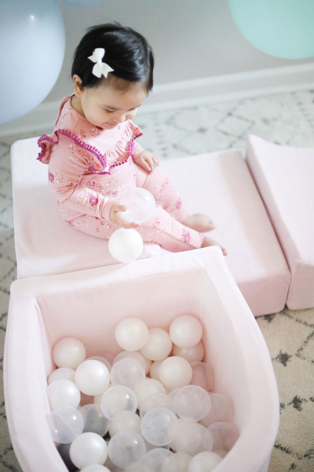 MeowBaby® Piankowy Zestaw do Zabawy z Basenem + 100 piłeczek do wyboru, Jasnoróżowy