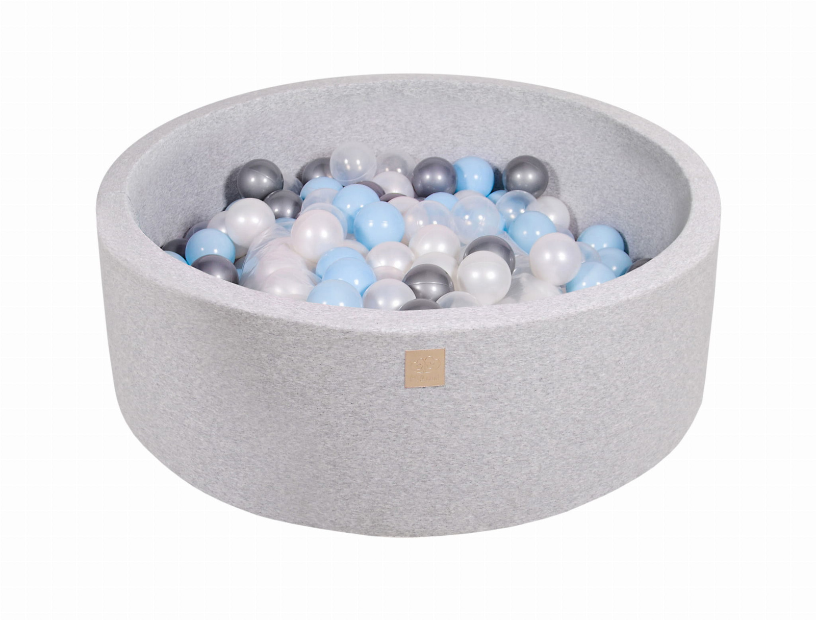 MeowBaby® Suchy Basen 90x30cm z 200 piłkami, Jasnoszary: baby blue, transparentne, srebrne, biała perła