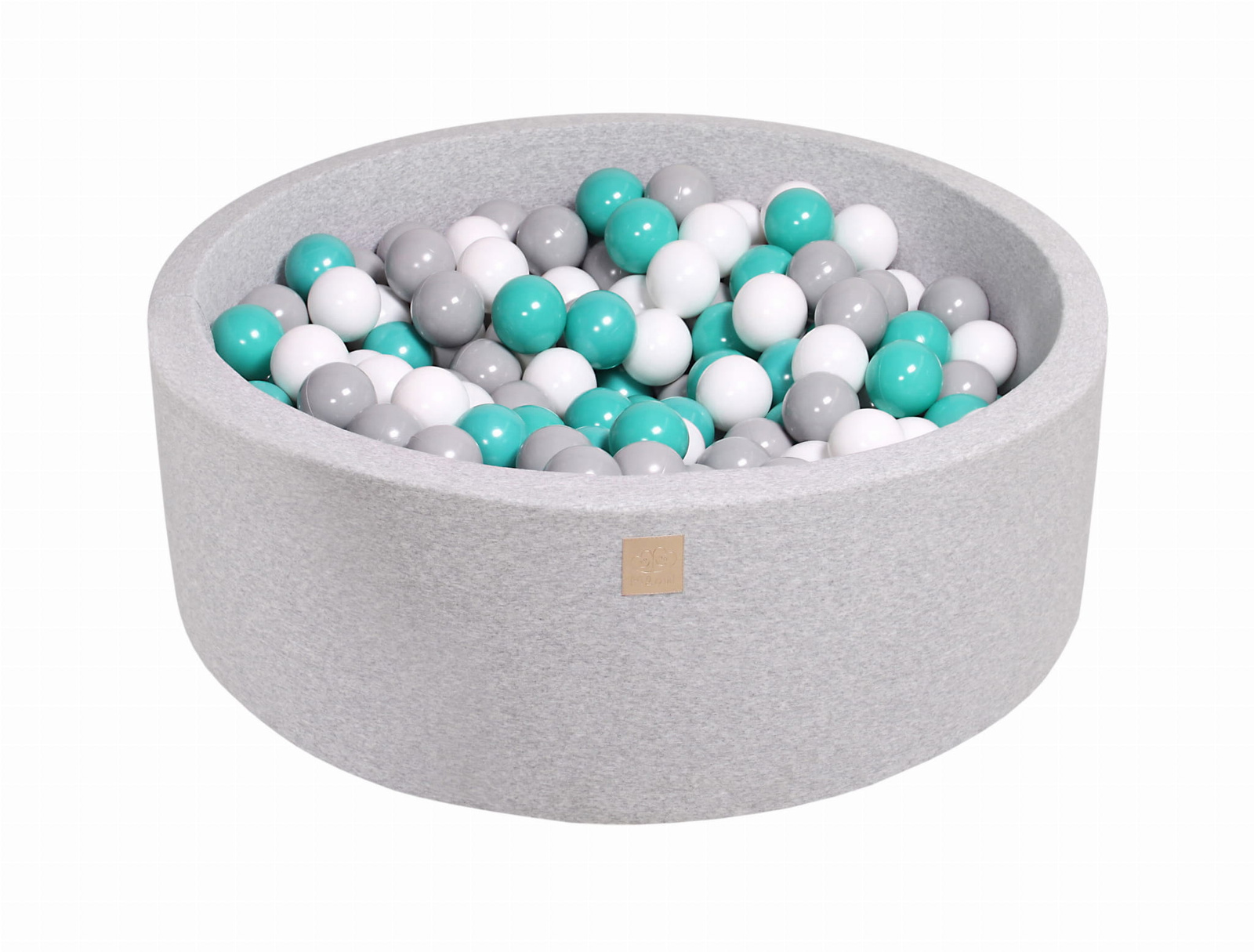 MeowBaby® Suchy Basen 90x30cm z 200 piłkami, Jasnoszary: turkusowe, szare, białe