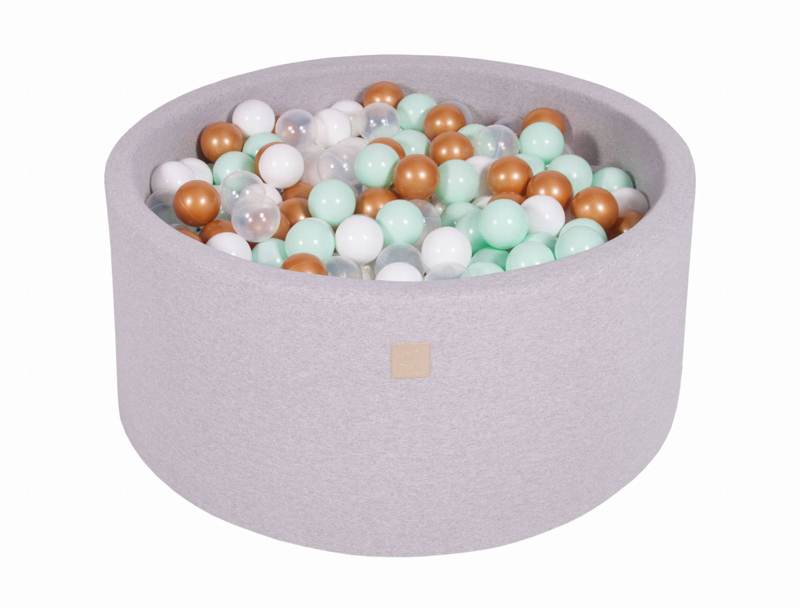 MeowBaby® Suchy Basen 90x40cm z 300 piłkami, Jasnoszary: białe, złote, transparentne, miętowe