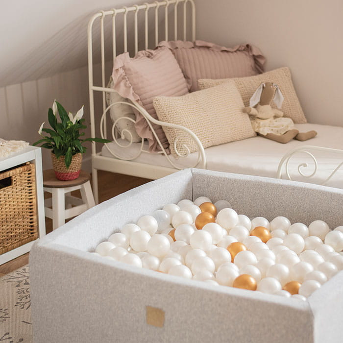 Kwadratowy suchy basen możemy połączyć z piłeczkami w kolorach tęczy - ograniczać może nas tylko wyobraźnia. Zależenie od tego jaką kolorystykę zestawy piłek wybierzemy, nadmy mu niecodzienny charakter. Może być on słodki jak różowa wata cukrowa lub odważny jak czerwony płomień. Wybór należy do Ciebie!