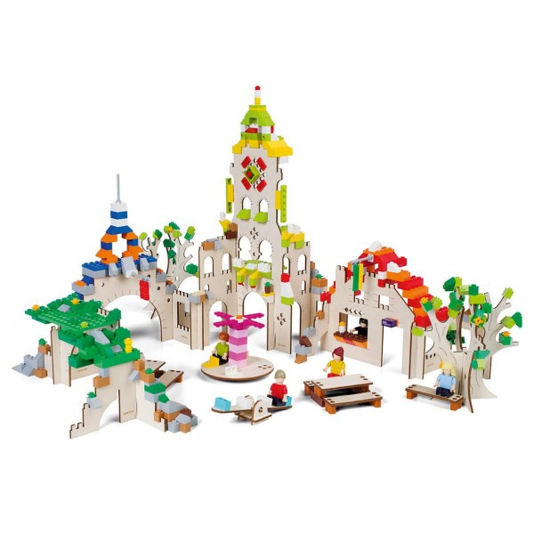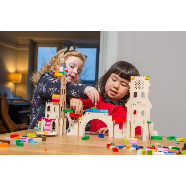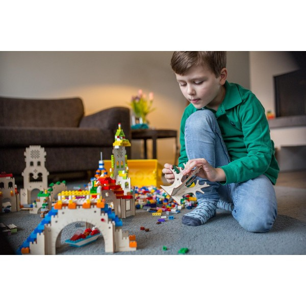 Miasto to największy zestaw od holenderskiej marki BRIKKON - pozwoli stworzyć własne miasto przy użyciu drewnianych elementów, klocków i odrobiny wyobraźni. Ten zestaw daje nieskończoną liczbę możliwości tworzenia włąnych budynków, projektowania własnej ulicy czy stworzenia własnego miasteczka.  BRIKKON to drewniane elementy, które są kompatybilne z klockami LEGO i pomagają dzieciom w tworzeniu nowych niesamowitych budowli, tworząc ich bazę i dając im podstawę.  BRIKKON sprawi, że twoje dzieci zaczną znów bawić się swoimi starymi klockami. „Zobacz, co zrobiłem!” Nic nie sprawia, że ​​dzieci są bardziej dumne niż budowanie czegoś, co wymyślili. Nie są do tego potrzebne nowe klocki LEGO - twoje własne pudełko LEGO oferuje wiele możliwości. BRIKKON pozwala odkryć te możliwości i ułatwia dzieciom samodzielne tworzenie czegoś. BRIKKON wzywa dzieci do ponownego użycia własnych klocków LEGO i wymyślenia czegoś samodzielnie. Wyłączcie ekrany i po prostu zacznijcie budować, co chcecie. Pozwól dzieciom zagłębić się w wyobraźnię i odkryć kreatywność w zabawny sposób. Marka BRIKKON jest nie tylko projektowana, ale również produkowana w Holandii -  z najwyższej jakości eko - produktów, z dbałością o każdy szczegół.  Pomysł stworzenia BRIKKON zrodził się pewnego dnia, gdy nasze własne dzieci bawiły się klockami LEGO. Jeśli zestaw został wykonany zgodnie z opisem w instrukcji budowy, nie rozbierał go już na części lub potrzebny był nowy zestaw, aby mogli zacząć budowę od nowa. Pudełko LEGO nie zostało ponownie użyte, mimo że zawiera wiele możliwości. Ale zaczynanie od zera często może być trudne. Zestaw nie zawiera klocków jedynie drewniane elementy, które są kompatybilne z wszystkim klockami typu LEGO - nie duplo. Zestaw zapakowany jest w ekologiczne tekturowe opakowanie, wszystkie elementy drewniane są wykonane ze sklejki brzozowej pochodzących z odpowiedzialnie zarządzanych lasów z troską o ekologię.  Wymiary: 45 x 45 x 28 cm. Wymiary opakowania: 28 x 18 x 3 cm.