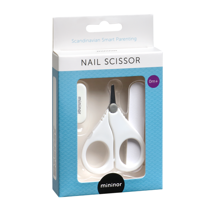 Nożyczki i pilnik do paznokci Mininor zostały zaprojektowane tak, aby bezpiecznie obcinać paznokcie dziecka i zapobiegać powstawaniu zadrapań na jego twarzy.