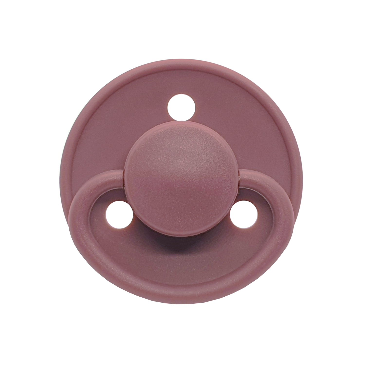 Ten okrągły smoczek retro jest dostępny w 6 różnych kolorach (Snowberry, Rose, Nordic Blue Sky, Willow green, Heath flower, Grey seal) i w dwóch rozmiarach (0m+ og 6m+).