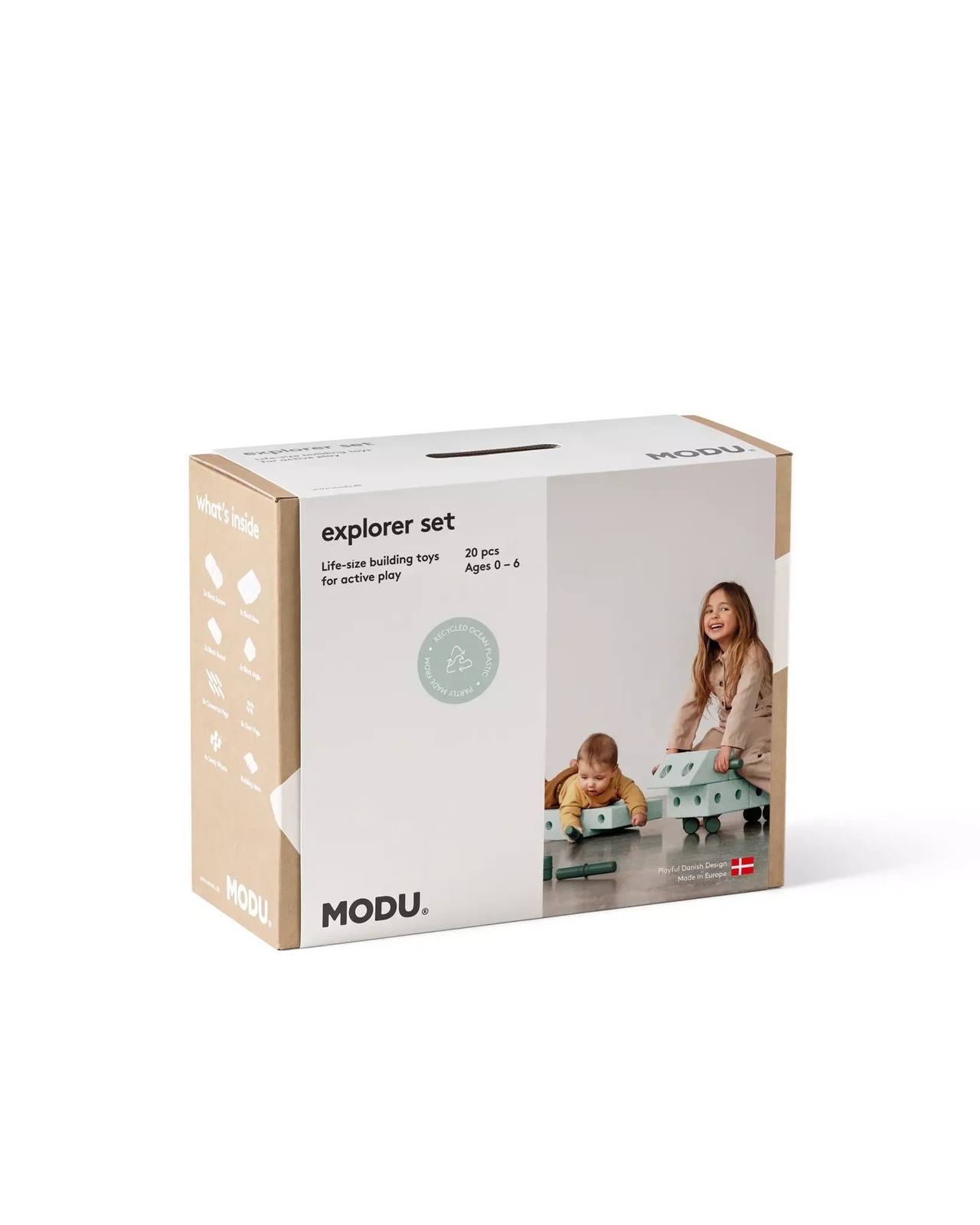 - MODU Explorer set - Kreatywne klocki rozwijające motorykę dużą gwarantują super zabawę dla dzieci i dorosłych. Rozwijają zdolności motoryczne. Jeździk, deska balansująca, auto, mebelki - z MODU zbudujesz wszystko. Materiał w 100% do recyklingu.