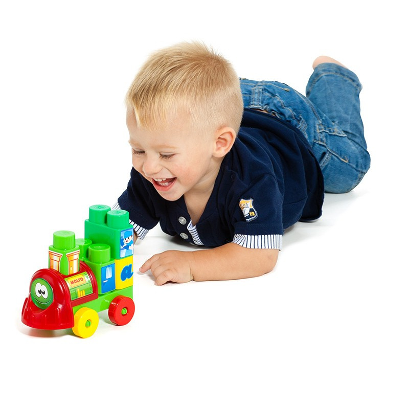 Zestaw ten rozwija wyobraźnie i uczy kreatywności. Klocki Molto mają zaokrąglone brzegi co wpływa na bezpieczeństwo zabawy. Łatwe do chwytania i układania klocki wspomagają rozwój zdolności manualnych. Odpowiednie dla dzieci po 1 roku życia.