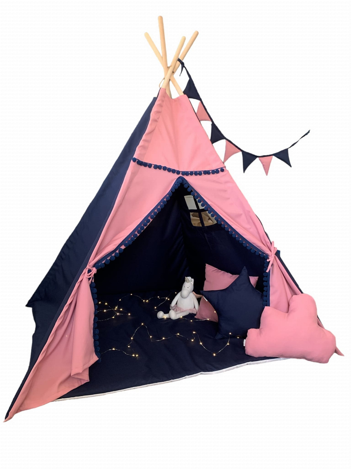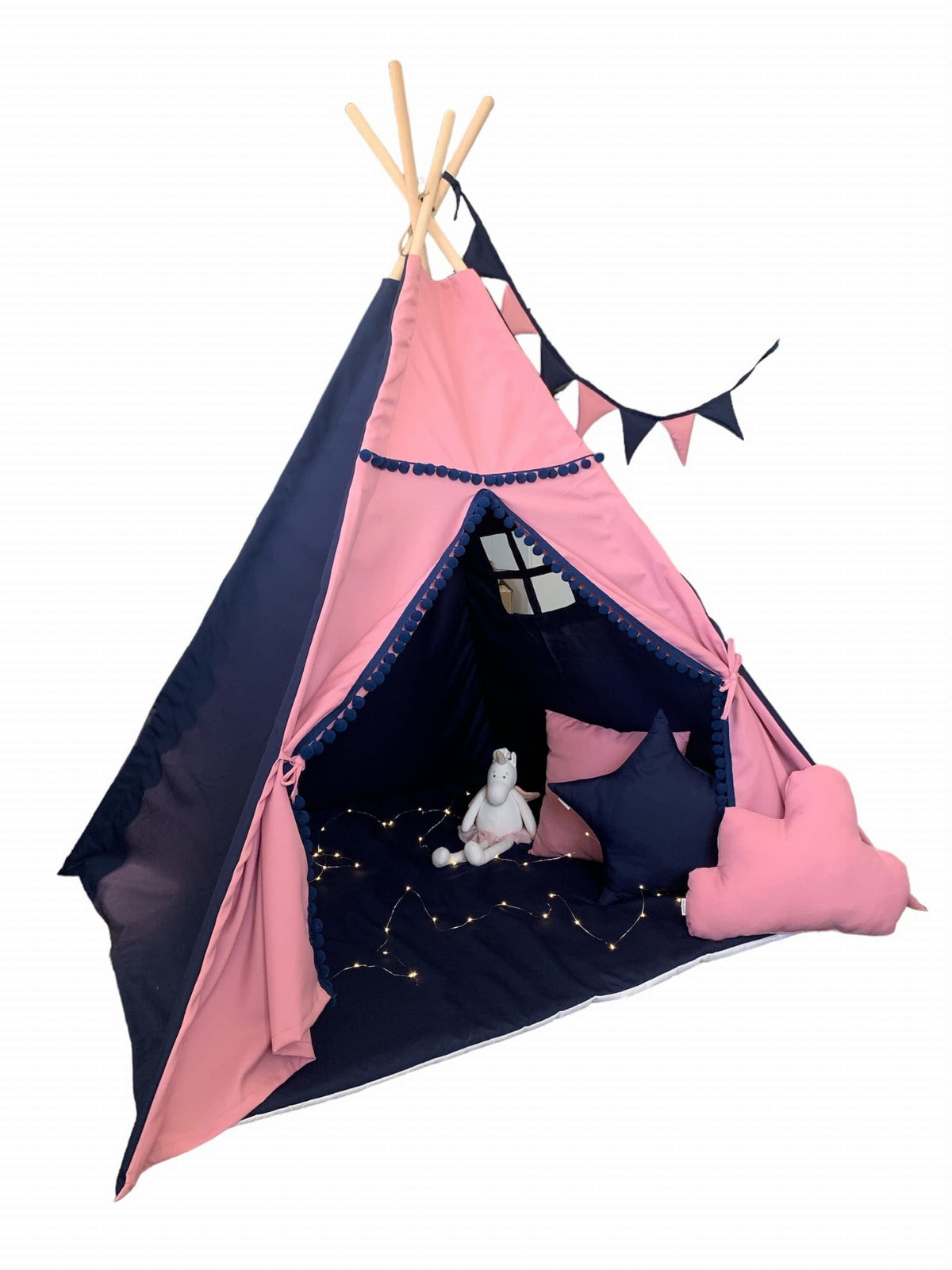 Namiot Tipi różowo-granatowy do zabawy dla dziecka