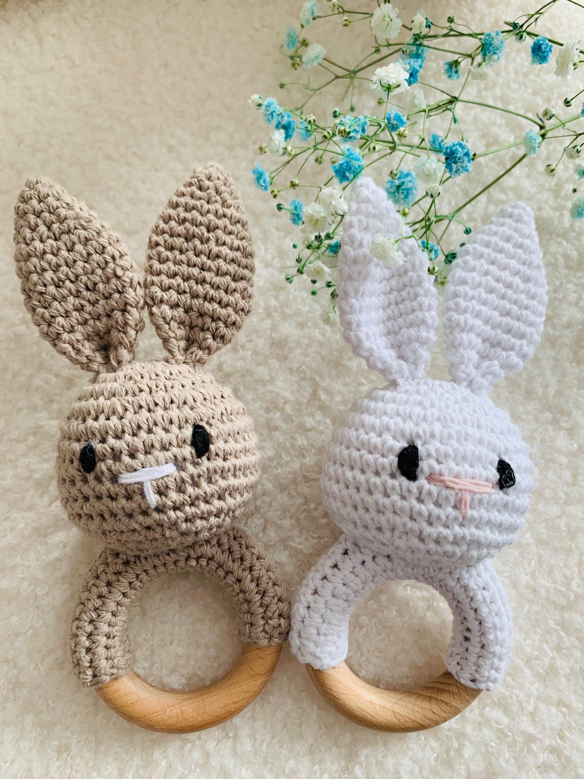Naturalna grzechotka gryzak Królik dla niemowlaka, kolor biały