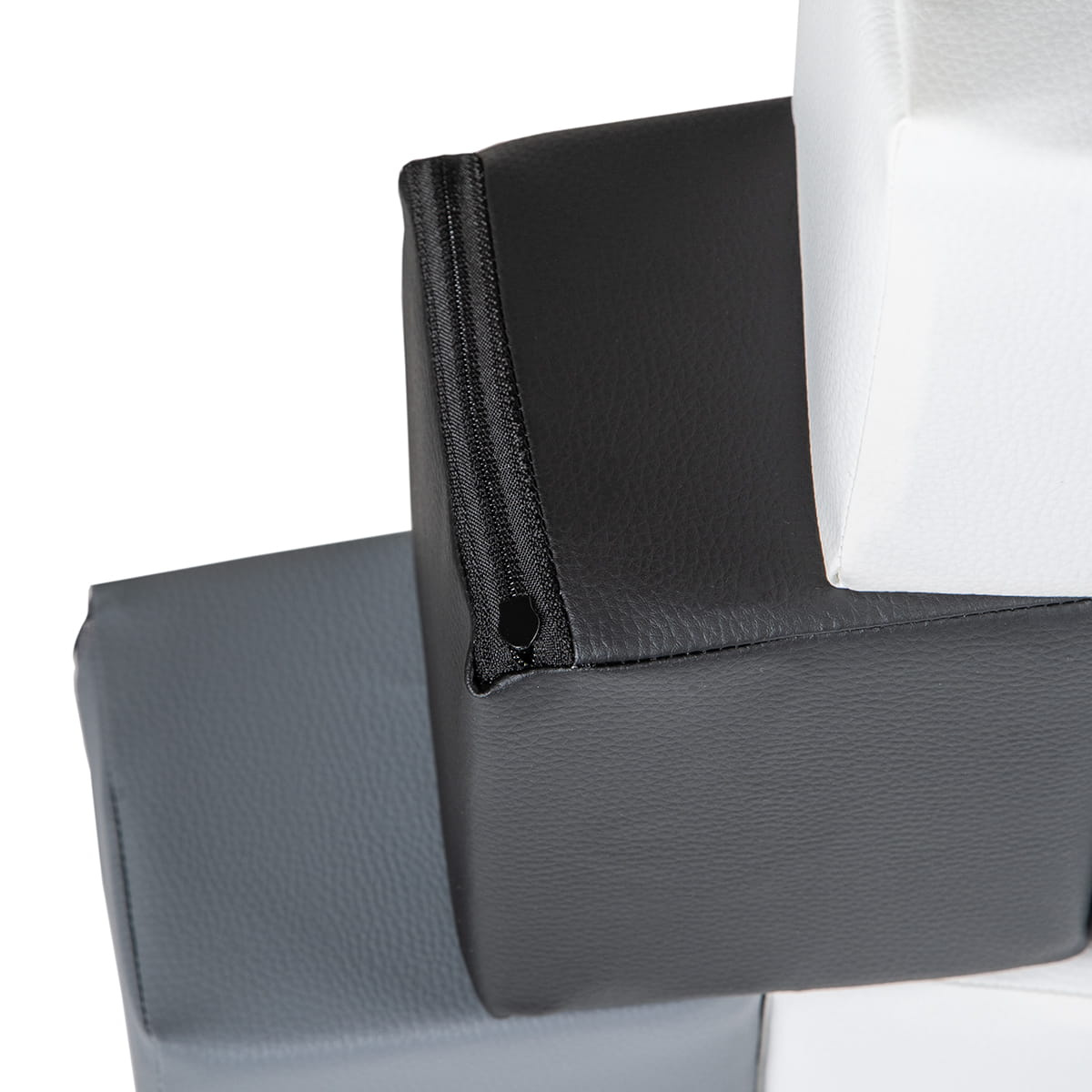 Klocki z gąbki po złożeniu stanowią jedną bryłę, są zatem praktyczne w przechowywaniu i nie zajmują wiele miejsca.