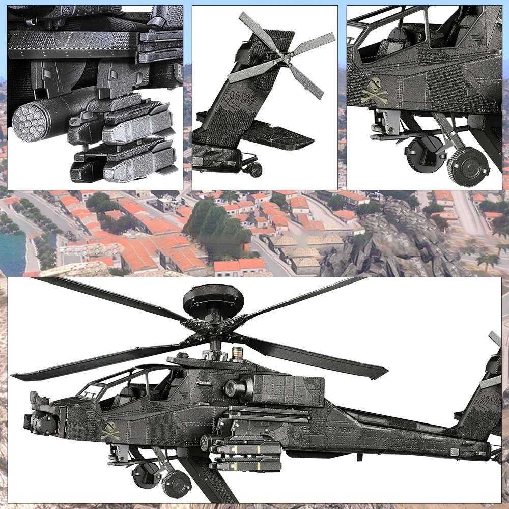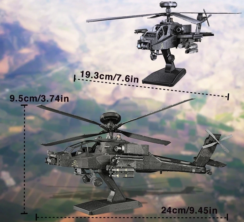 Piececool Puzzle Metalowe Model 3D - Helikopter AH-64 Apache