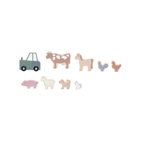 To świetna edukacyjna zabawka, która sprawia wiele frajdy, a przy okazji idealnie sprawdza się do nauki liczb, zwierząt domowych i poznawania wielkości. W każdym domku mieszka zwierzątko, w zestawie mamy: krowę, konia, świnię, owce, kota i psa, kurę i kogut oraz traktor.