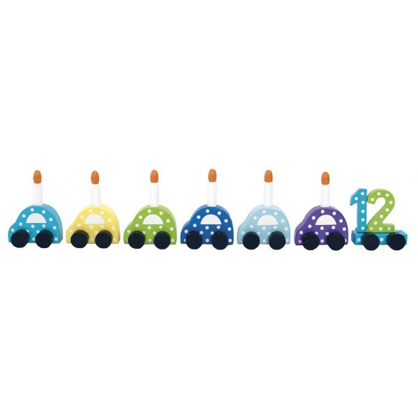 - Uroczy drewniany urodzinowy pociąg autaszwedzkiej marki Jabadabado, idealny do dekoracji stołu jak również do zabawy dla dzieci od roku. Pociąg składa się z sześciu różnokolorowych aut, każdy samochodzik na czterech kółkach, ma drewnianą świeczkę. W zesta