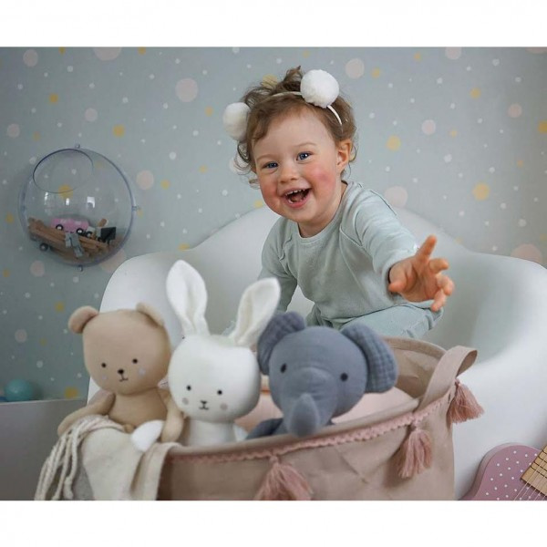 Delikatny i przyjazny słonik przytulanka dla najmniejszych pociech. Pozwól naszym przytulankom stać się najlepszymi przyjaciółmi twojego dziecka. Dzieci czują się bezpiecznie w obecności swoich ulubionych zabawek. Z naszymi małymi przyjaciółmi, płacz szybko odejdzie w zapomnienie a twój maluch prześpi całą noc. Do wyboru mamy 3 wzory przytulanek. Który jest twoim ulubieńcem?  Wymiary: długość 29cm Materiał: poliester, bawełna Jabadabado to szwedzka firma istniejąca na rynku od 1993 roku specjalizująca się w projektowaniu i produkcji zabawek drewnianych, elementów wyposażenia pokoi dziecięcych. Wszystkie produkty Jabadabado cechuje oryginalny design, piękna kolorystyka i niezwykle staranne wykonanie. Wszystkie zabawki marki Jabadabado stworzone są z myślą o dzieciach i pobudzają do kreatywnej zabawy.
