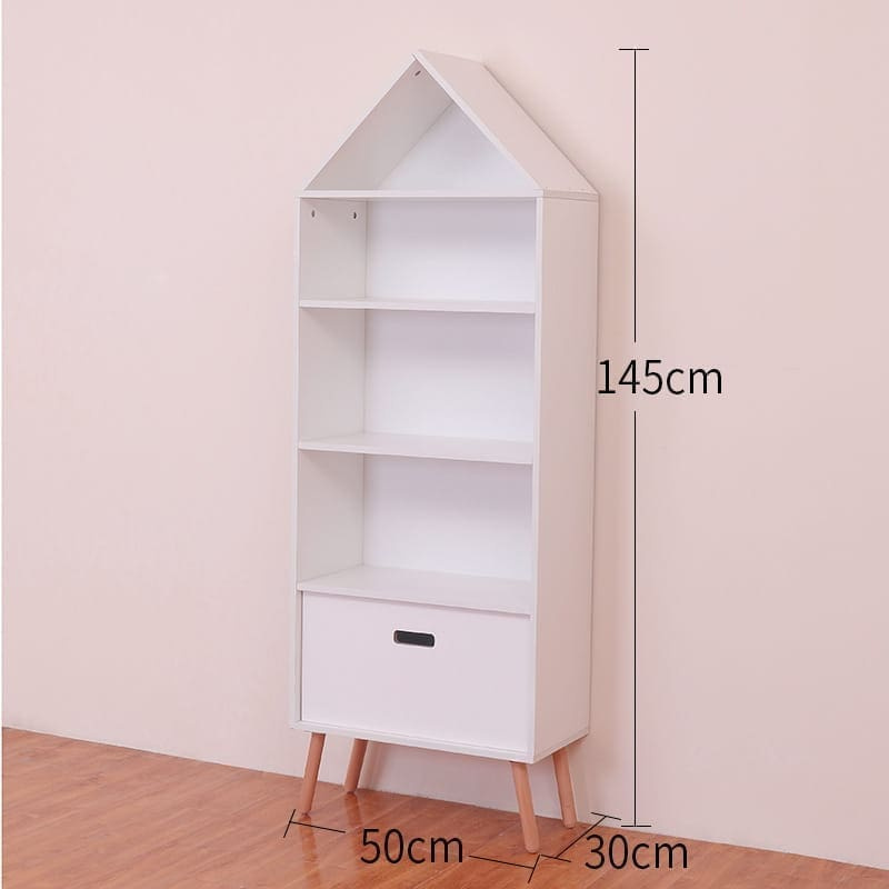 Duży regał domek słupek to wymarzony mebel do każdego pokoiku dziecięcego. Może służyć jako domek dla lalek, pomieści też książki, zabawki czy inne dekoracje. Posiada kilka półek oraz jedną dolną szufladę, która posłuży do zagospodarowania drobiazgów. Regał doda wyjątkowego charakteru wnętrzu, nada ciepłego domowego klimatu i oryginalnego wyglądu. Do kompletu zachęcamy zakupić Regał domek. Stwórz wymarzony pokoik dla Twojego dziecka, dzięki wyjątkowym mebelkom i dodatkom w skandynawskim klimacie :) Regał wykonany z białej płyty MDF, nóżki drewniane sosnowe. Regał do samodzielnego montażu. Rozmiar