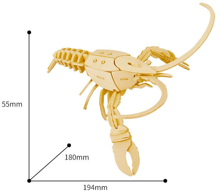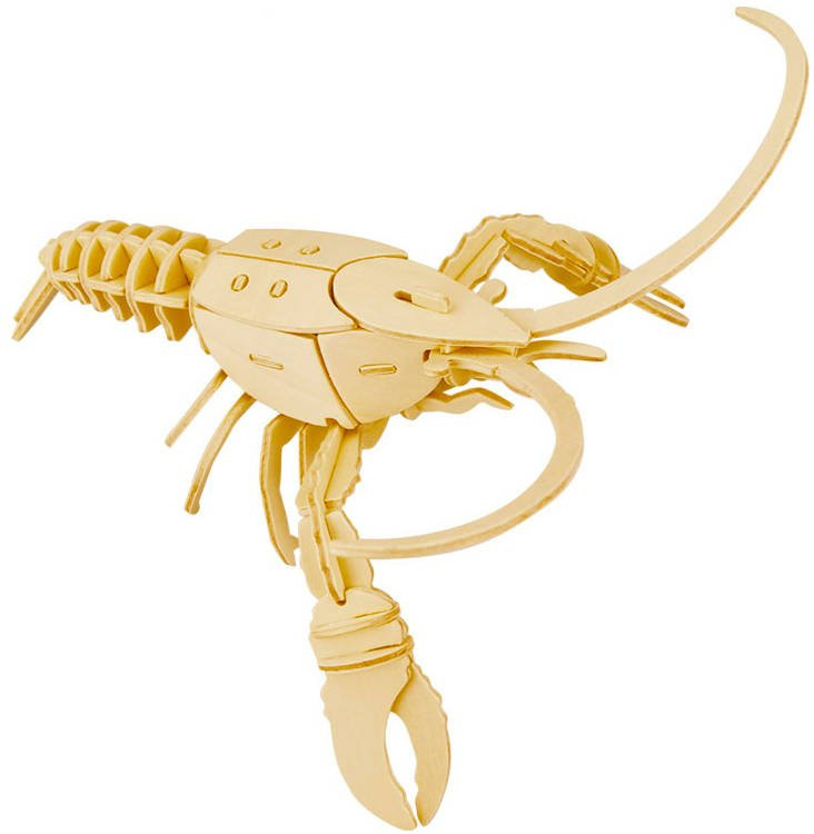 Drewniane puzzle 3D w kształcie krewetki. Zestaw został wykonany z wysokiej jakości sklejki i jest w postaci arkuszy z wstępnie wyciętymi i ponumerowanymi elementami. Przed montażem należy oddzielić części od wykroju, a następnie połączyć bez użycia kleju, zgodnie ze szczegółową instrukcją dołączoną do opakowania. Zabawka edukacyjna, która po złożeniu może również służyć jako dekoracja. Uwaga- zestaw może zawierać małe elementy, podczas składania puzzli, dzieci muszą pozostać pod opieką dorosłych.