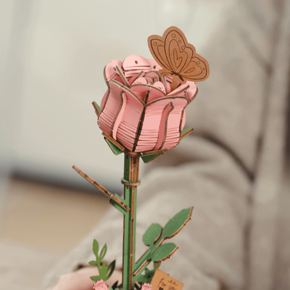 ROBOTIME Drewniane Puzzle Model 3D DIY - Kwiat Różowa Róża