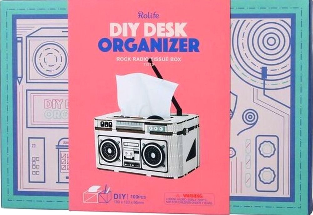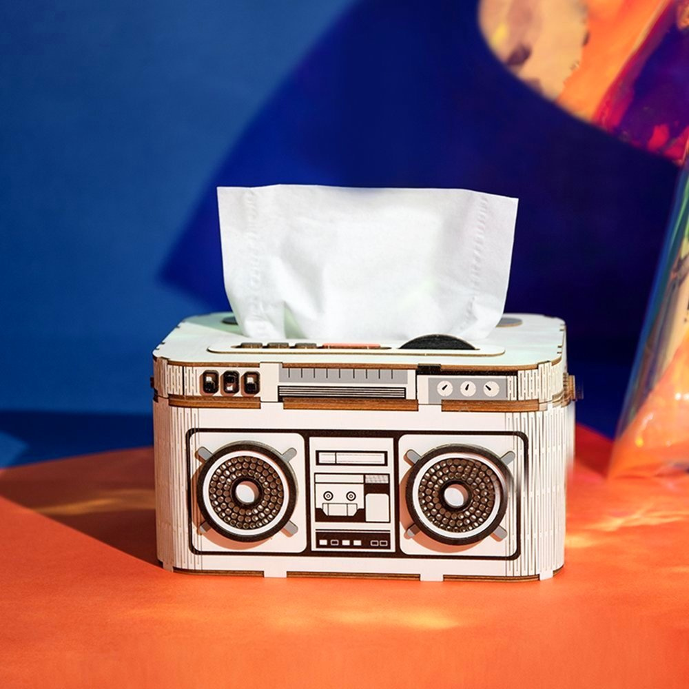 Kolorowy dozownik do chusteczek w kształcie radia, który pomoże utrzymać ład i porządek na Twoim biurku. Zestaw został wykonany z wysokiej jakości sklejki i jest w postaci arkuszy z wstępnie wyciętymi i ponumerowanymi elementami. Przed montażem należy oddzielić części od wykroju, a następnie połączyć bez użycia kleju, zgodnie ze szczegółową instrukcją dołączoną do opakowania.
