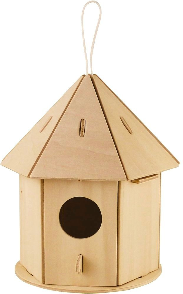 - Drewniany karmnik dla ptaków. Puzzle 3D, które po złożeniu można pomalować. Opakowanie zawiera niezbędne farby oraz pędzel.