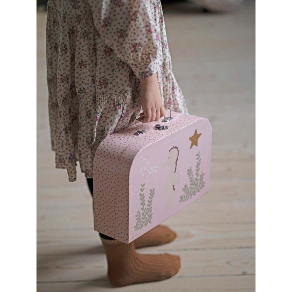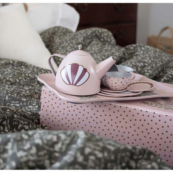 Uroczy, stylowy serwis do herbaty marki Jabadabado w jasnej, pastelowej kolorystyce w małe kropeczki z motywem konika morskiego zachwyci każdą gosposię i jej gości. Serwis wykonany z wysokiej jakości metalu, zapakowany w tekturową walizkę przeznaczony dla czterech osób.