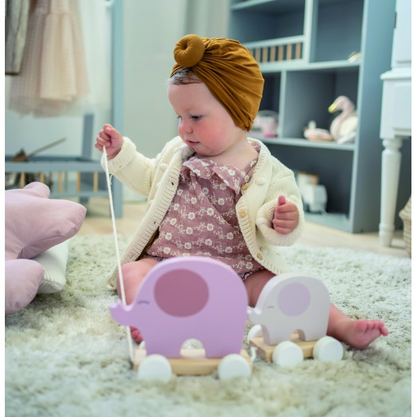 Urocze drewniane słoniki na sznureczku do ciągnięcia szwedzkiej marki Jabadabado to nasza nowość. Ta ponadczasowa, klasyczna zabawka drewniana znana od wieków i uwielbiana przez dzieci, ta wersja to nowoczesna skandynawska jej odsłona. W zestawie ciemno-różowy uroczy słoń wraz z jasnoróżowym słonikiem, słonie pokocha każdy maluch staną się one nieodzownym kompanem pieszych wycieczek, i pięknym elementem dekoracyjnym w pokoju dziecięcym. Zabawka do ciągnięcia ćwiczy koordynację ręka - oko, oraz pomaga w utrzymywaniu równowagi i w nauce stawiania pierwszych kroków.