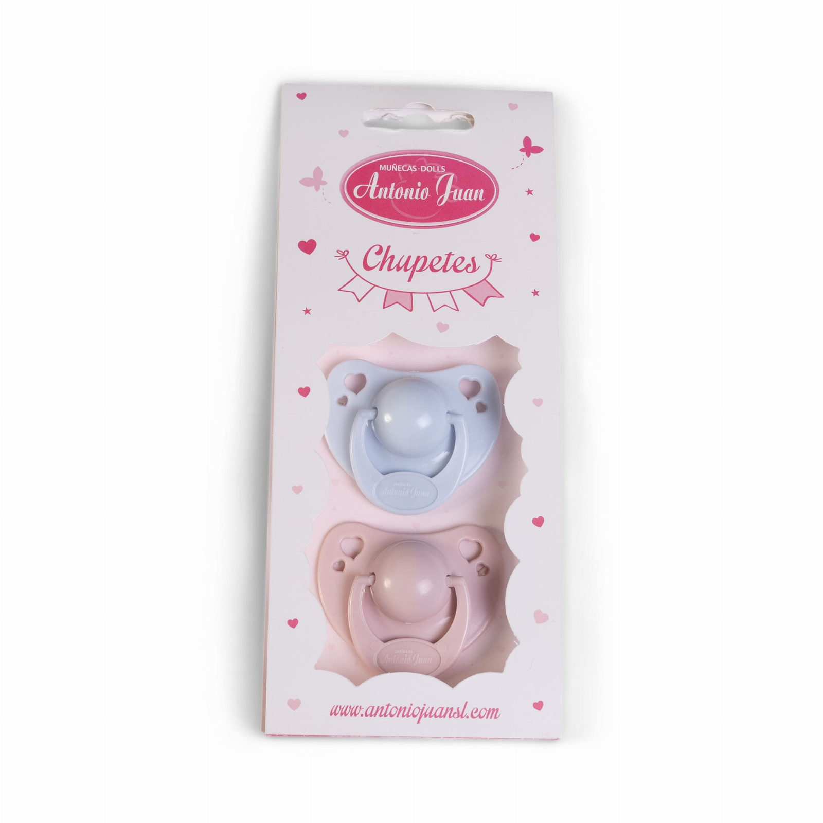 Smoczek dla lalki oferowany przez hiszpańską markę jest przeznaczony dla lalek z otwartą buźką z serii Antonio Juan. W zestawie otrzymamy 2 sztuki produktu jeden w kolorze różowym, zaś drugi w niebieskim.