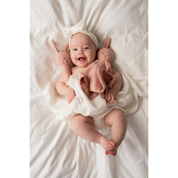 Tuliś - różowy królik skandynawskiej marki Jabdabado to najlepszy przyjaciel każdego maluszka. Został zaprojektowany z myślą o pierwszych chwilach na świecie, kiedy to sen jest jedną z najważniejszych czynności do wykonania :) Tuliś jest połączeniem pieluszki muślinowej i i milutkiego w dotyku sympatycznego z długimi uszkami królika.