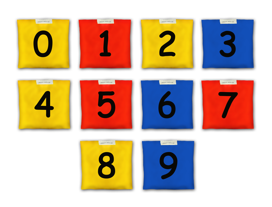 Woreczki gimnastyczne Akson Cyferki ZESTAW 3 KOLORY