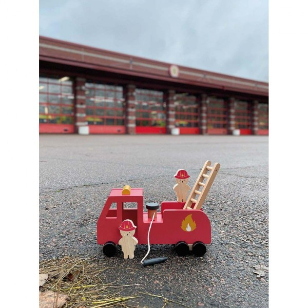 Fantastyczny drewniany wóz strażacki dla najmłdoszych. Z tym pojazdem twój maluch ugasi nawet największy pożar. Do pomocy twój maluch otrzyma dwóch strażaków, którzy chętnie złapią za wąż strażacki by ugasić każdy ogień. Drabina jest składana, oraz można ją obracać w różnych kierunkach. Wąż strażacki można rozwijać, a następnie zwinąć na swoje miejsce. Zabawka pobudza wyobraźnie i zachęca do kreatywnej zabawy. Zestaw zawiera: wóz strażacki z ruchomą drabiną i wężem strażackim 2 strażaków Materiał: drewno Wiek: 18 miesięcy + Wymiary opakowania: 18 x 12 x 30 cm Wymiary produktu: 29 x 11 x 15 cm Jabadabado to szwedzka firma istniejąca na rynku od 1993 roku specjalizująca się w projektowaniu i produkcji zabawek drewnianych, elementów wyposażenia pokoi dziecięcych. Wszystkie produkty Jabadabado cechuje oryginalny design, piękna kolorystyka i niezwykle staranne wykonanie. Wszystkie zabawki marki Jabadabado stworzone są z myślą o dzieciach i pobudzają do kreatywnej zabawy.