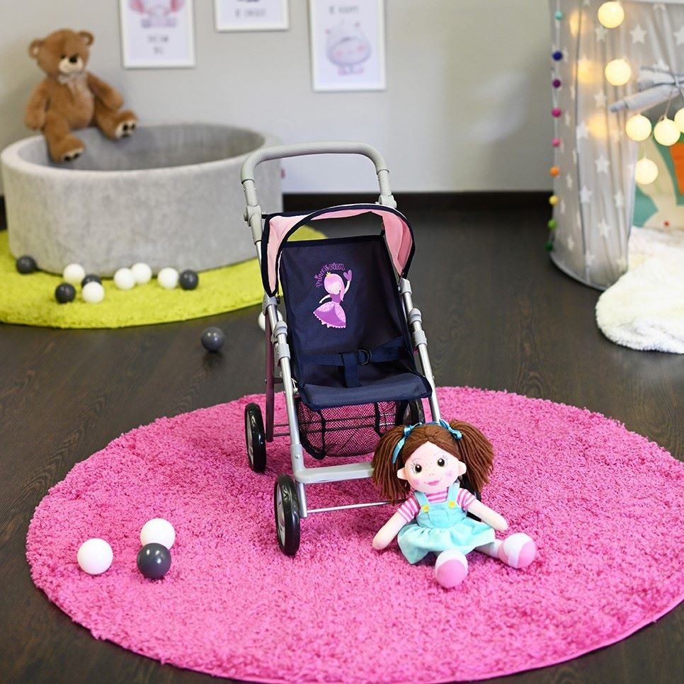 Zwraca uwagę uniwersalna różowo-granatowa kolorystyka i wizerunek księżniczki. Regulowany daszek chroni lalkę przed słońcem i wiatrem. Dzięki zastosowaniu praktycznych pasów bezpieczeństwa zabawka zawsze pozostanie na swoim miejscu. Co więcej, lekka, ważąca około 2 kg spacerówka jest wyposażona w praktyczną siatkę na zakupy, dzięki której dziecko może przewozić wszystkie niezbędne akcesoria, takie jak: ubranka, butelka, smoczek, czy też kocyk.