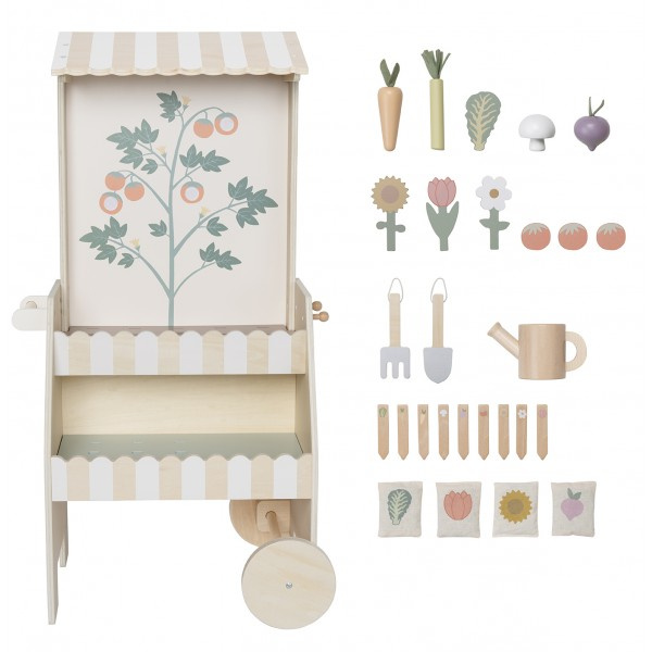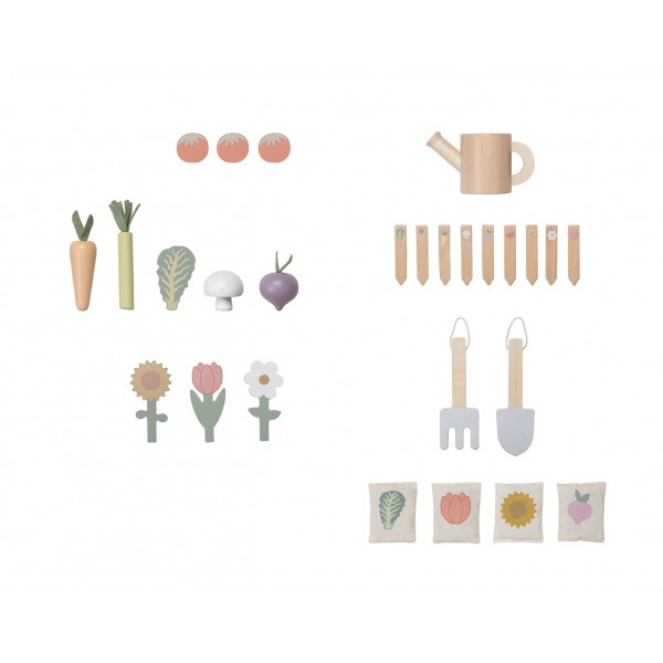 Wiosenna nowość marki Jabadabado - idealna dla miłośników przyrody, natury i ogrodnictwa! Ten uroczy wózek ogrodowy, to marzenie każdego małego ogrodnika w pełni wyposażony, zawiera wszystko to, co niezbędne by cieszyć się pięknym własnym ogródkiem:) Dzięki takim edukacyjnym, zabawkom drewnianym, mali pasjonaci ogrodnictwa, już od najmłodszych chwil mogą naśladować dorosłych rozwijając swoje ogrodnicze pasje, odkrywać radość sadzenia i zbierania własnych kwiatów czy warzyw. W tym wózku ogrodnika jest wszystko co niezbędne do kreatywnej, edukacyjnej zabawy - od kolorowych kwiatów, po dorodne warzywa - a wszystko drewniane, pomalowane ekologicznymi farbami i gotowe do zabawy. W tym wózku ogrodnika znajdziecie: - wózek - patyczki do sadzenia -8szt. -karty z nasionami -4szt. - konewka -grabki -łopatka -grzybki - 2szt -marchewki-2szt - rzodkiewki - 2szt -por -2szt -liście kapusty -2szt. -stokrotki -2szt. - tulipany -2 szt. -słoneczniki -2szt. Ta edukacyjna zabawka drewniana stwarza wiele możliwości kreatywnej zabawy: - uczy odpowiedzialności i cierpliwości - uczy pielęgnacji roślin, czekania na efekty swojej pracy, - rozwija kreatywność i wyobraźnię -stwarza tło do niezwykłych historii tych ogrodowych, i nie tylko - wspiera koordynację ręka -oko - sadzenie, zbieranie, podlewania, układanie - doskonałe ćwiczenia koordynacji ręka-oko, - wzbudza umiejętności społeczne - idealna zabawa w grupie, wspólna praca w grupie, nowe słownictwo, dzielenie się zadaniami - rozbudza ciekawość do poznawania natury i przyrody - zachęca do obserwowania, i nauki o roślinach Idealnie sprawdzi się do zabawy w domu, na tarasie i w ogrodzie - jak również w przedszkolu.  Wykonane z drewna z certyfikatem FSC. Wiek: 3+ Wymiary: 78 x 44 x 29 cm Jabadabado to szwedzka firma istniejąca na rynku od 1993 roku specjalizująca się w projektowaniu i produkcji zabawek drewnianych, elementów wyposażenia pokoi dziecięcych. Wszystkie produkty Jabadabado cechuje oryginalny design, piękna kolorystyka i niezwykle staranne wykonanie. Wszystkie zabawki marki Jabadabado stworzone są z myślą o dzieciach i pobudzają do kreatywnej zabawy.