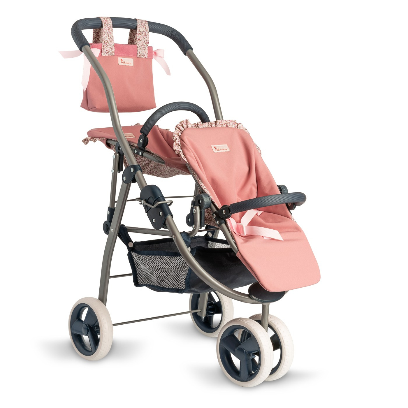 Elegancki i stylowy wózek hiszpańskiej marki ASI zachwyca designem i oryginalną konstrukcją. Umożliwia zabranie na spacer dwóch lalek oraz ustawienie siedzisk w tym samym kierunku, naprzeciwko siebie, a nawet obok siebie. Trójkołowy, ze śliczną torbą oraz siatką na akcesoria w zestawie, jest wygodny w użytkowaniu. Można go złożyć i zabrać ze sobą w podróż. Proponujemy go dzieciom w wieku od 3 lat.
