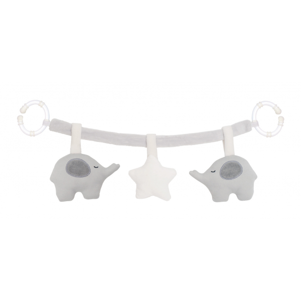 Urocza zawieszka szary słoń, łańcuch grzechotek do wózka marki Jabadabado to idealna zabawka dla małych odkrywców, zapewni wiele wrażeń. Poszczególne elementy: słoń i gwiazda wydają ciche dźwięki i szeleszczą.